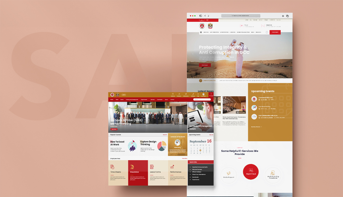 An internal portal and mobile app for the UAE’s State Audit Institution, supporting fraud reporting, events, news, and multiple internal request workflows. Designed to streamline communication and operations across the organization.