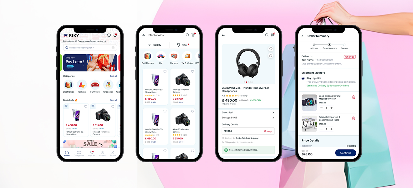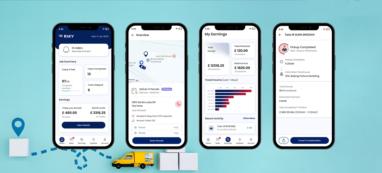 Led product and UX for RIKY, a cross-border e-commerce and logistics platform connecting China suppliers with UK customers. Delivered customer web & mobile apps, vendor and admin dashboards, driver pickup/delivery apps, and a logistics management suite for end-to-end fulfillment.